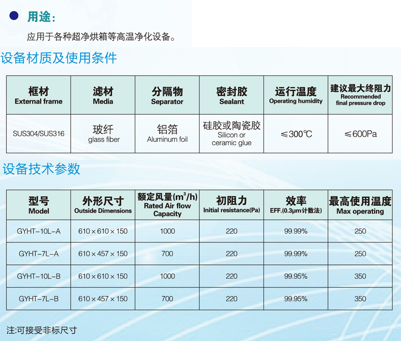 GYHT型耐高溫高效空氣過濾器