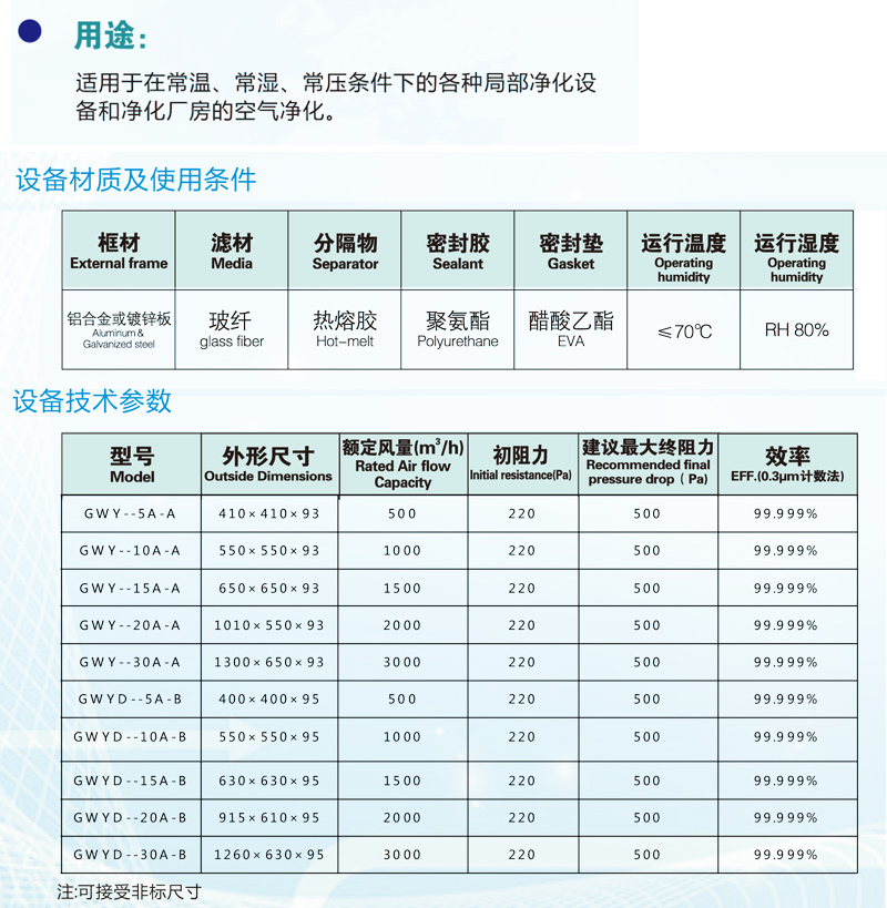 GWY系列液槽無隔板高效空氣過濾器
